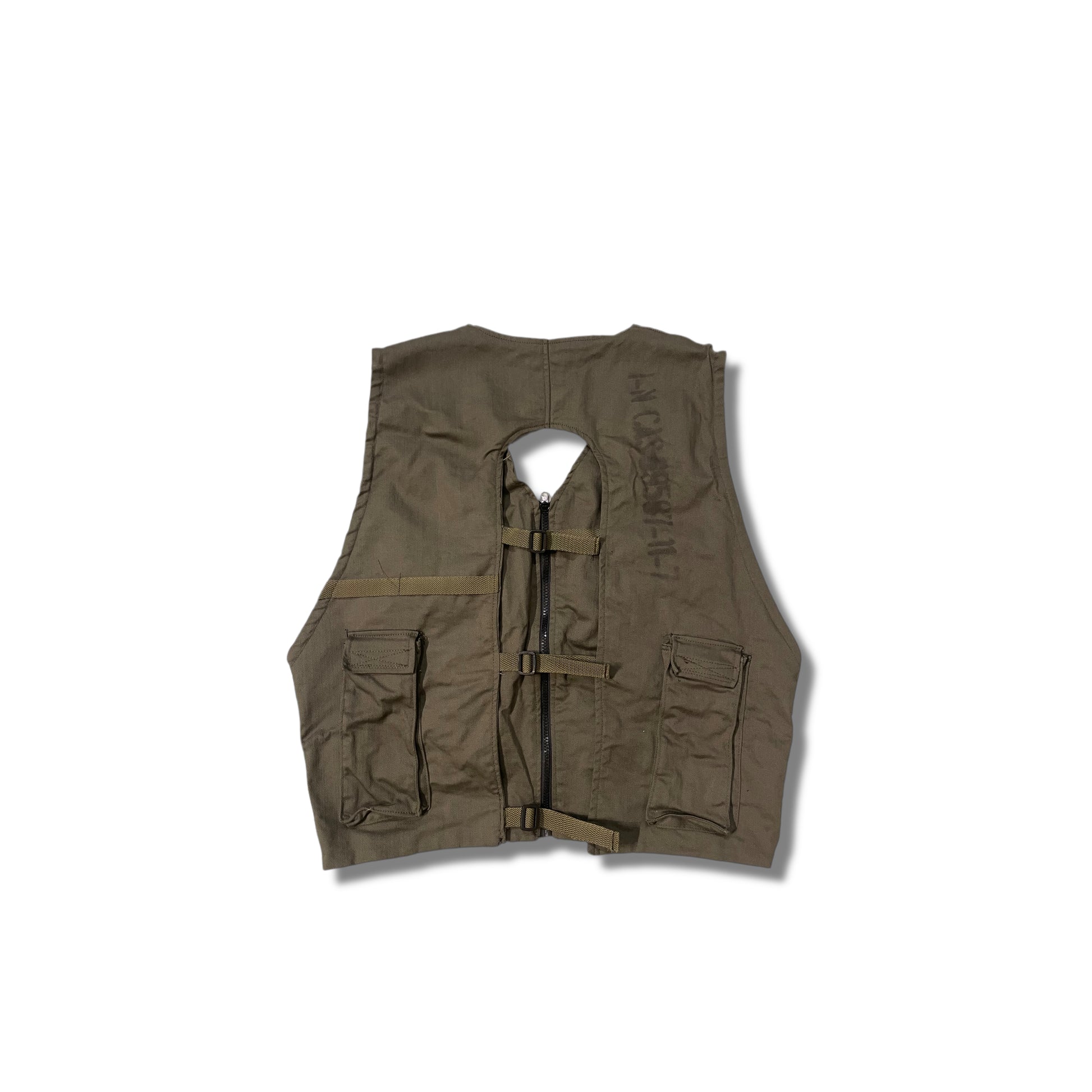 Tactical vest in khaki color with multiple 3D cargo pockets, embroidered logo, print on the back, drawstrings, sewn in two layers,metal zipper